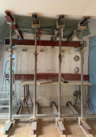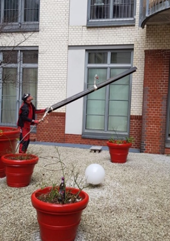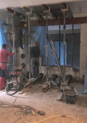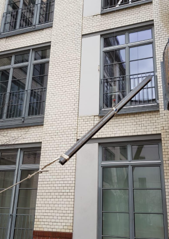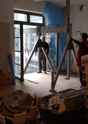 Stahlträger in den 3. Stock gehievt: Bei diesem Bauvorhaben am Paul-Linke-Ufer galt es, die Stahlbewehrungen durch die Fenster in den 3. Stock zu transportieren. Dort wurde eine Wandöffnung von 4 Meter Breite durchgeführt, die durch diese Ertüchtigung abgefangen wurde.
