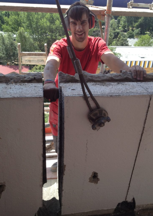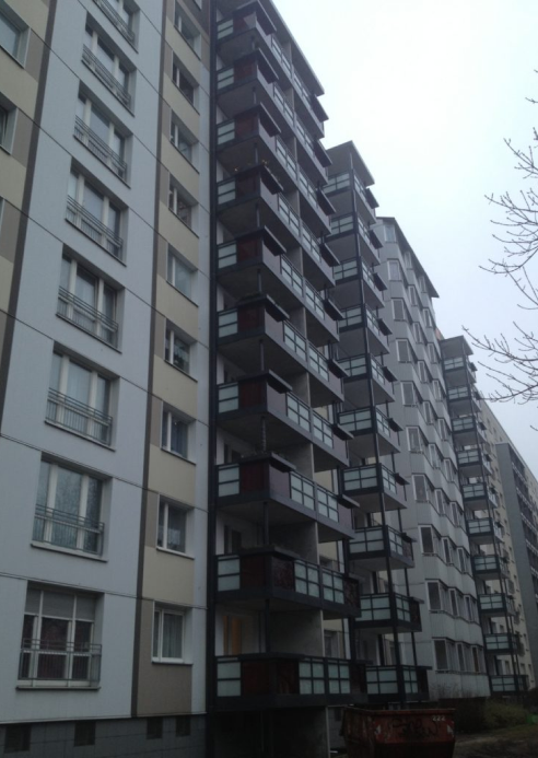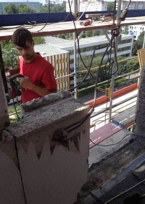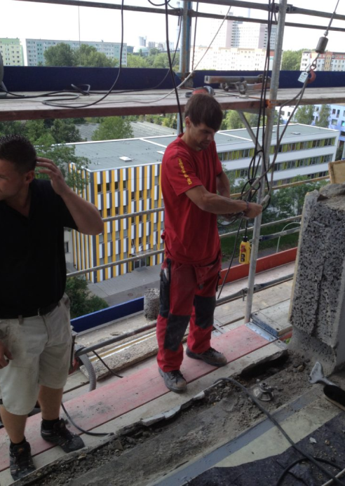 Hier wurden an einem Hochhaus Fensterbrüstungen ausgeschnitten.