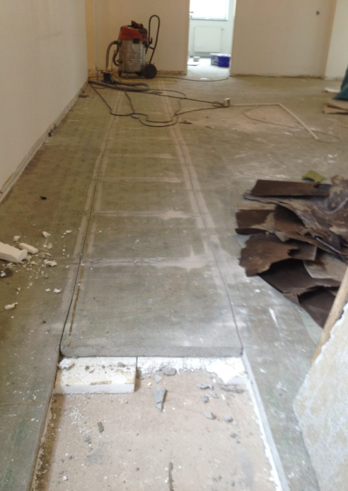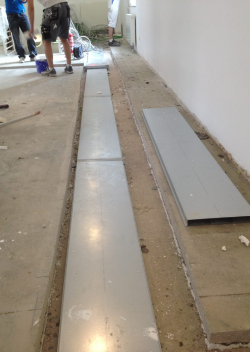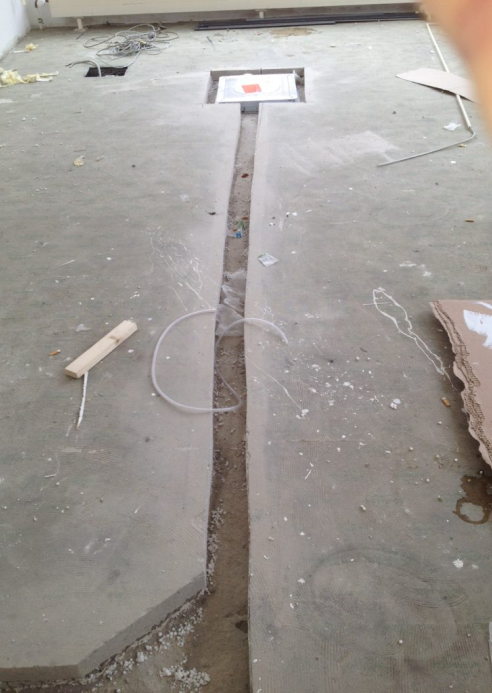 In diesem Beispiel wurde der Boden für eine Kabeltrasse ausgeschnitten. Auch komplexere Wegführungen sind dabei möglich. Das Material des Bodens kann Stein, Zement oder Beton sein.