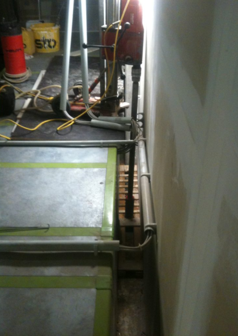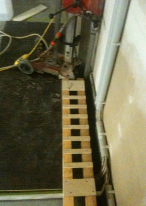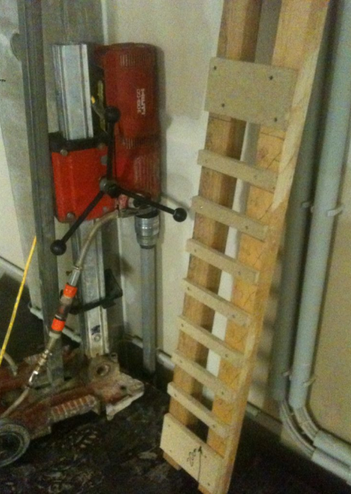 In diesem Beispiel sollte an einer schwer zugänglichen Stelle in den Boden gebohrt werden. Hierfür fertigten wir eine Roste aus Holz an, die als Schablone für die Bohrungen diente.
